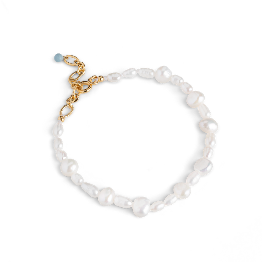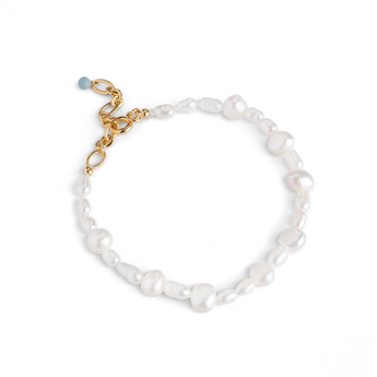 Armbåndet er lavet af barokke ferskvandsperler og forgyldt sølv forlængerstykke.