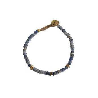 Lulu Earth armbånd fra Ibu Jewels med blå sodalit og gyldne messingdetaljer.