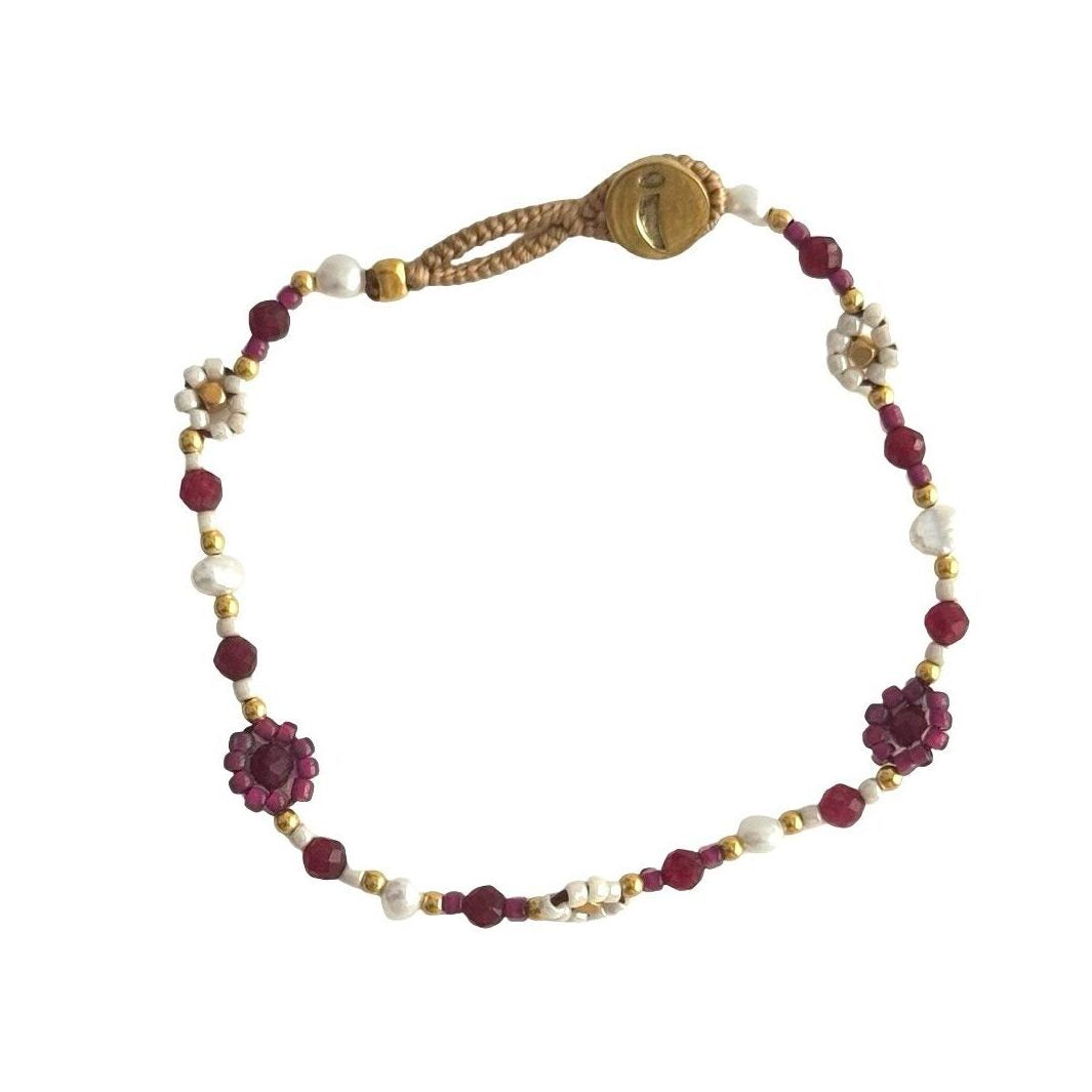 Ibu Jewels Lulu Flower armbånd i farven Maroon.