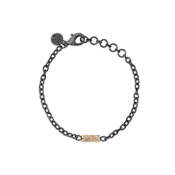 Armbåndet er fremstillet af en kraftig oxyderet sølvlænke med en smuk detalje i 14 karat guld med rosenslebne diamanter (0.10ct.) i pavé.