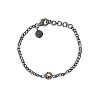 Armlænken er fremstillet i oxyderet sølv, med en smuk rund plade i 14 kt. guld med rosenslebne diamanter i pavéfatning (0.08ct.)