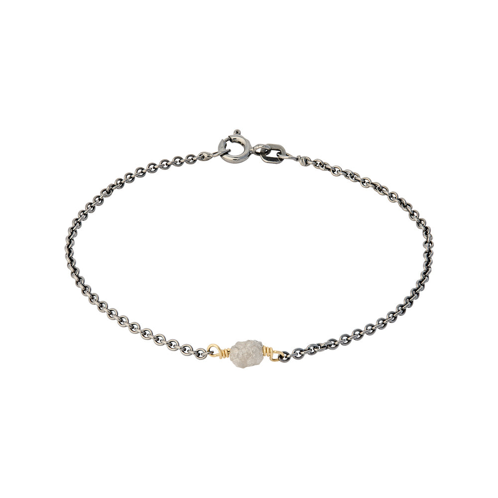 GLIMT armbånd i sort sølv med vikling i 14 karat og en smuk rådiamant.
