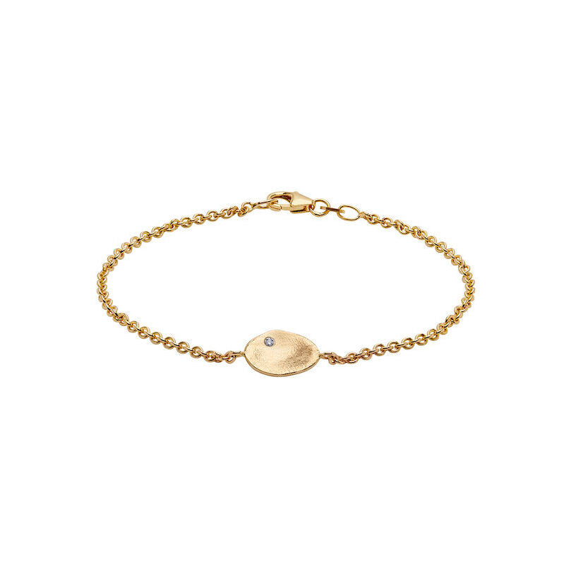 Smukt “Havre” armbånd i 14 karat guld. Armbåndet er prydet med en brillantslebet diamant (0.01 ct.).