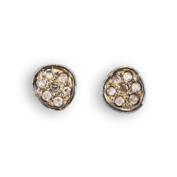 Ørestikker i oxyderet sterling sølv med 18 kt. guld med rosenslebne diamanter i pavé (0.40 ct.)