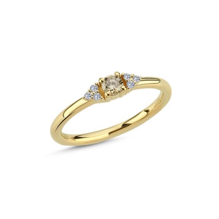 Champagne ringen er fremstillet i 14kt. rødguld med en 0.15ct. champagnediamant og i alt 0.06ct. hvide brillanter.