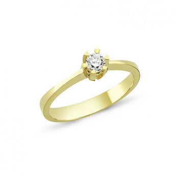 Ringen er prydet med en brillantslebet diamant. Diamanten holdes af seks grabber.