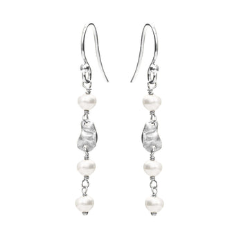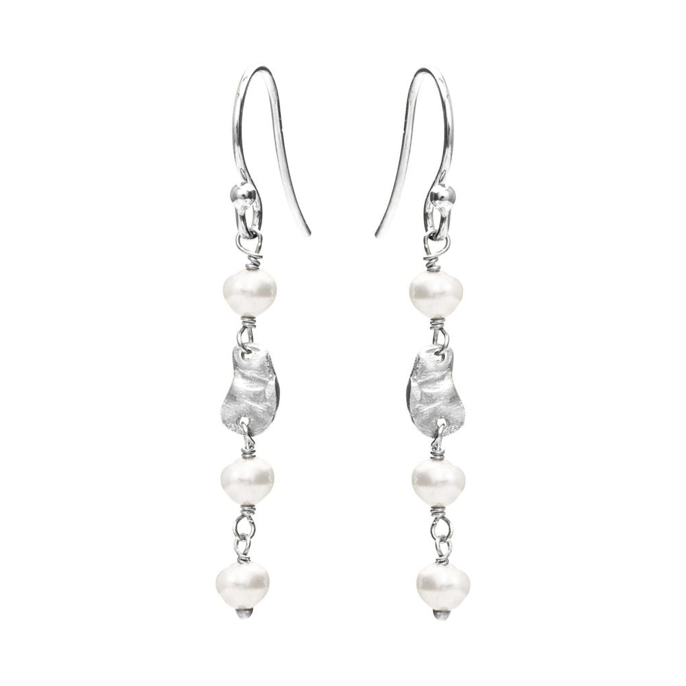 Hver ørehænger er prydet med små hvide ferskvandsperler og et led i matteret sølv.