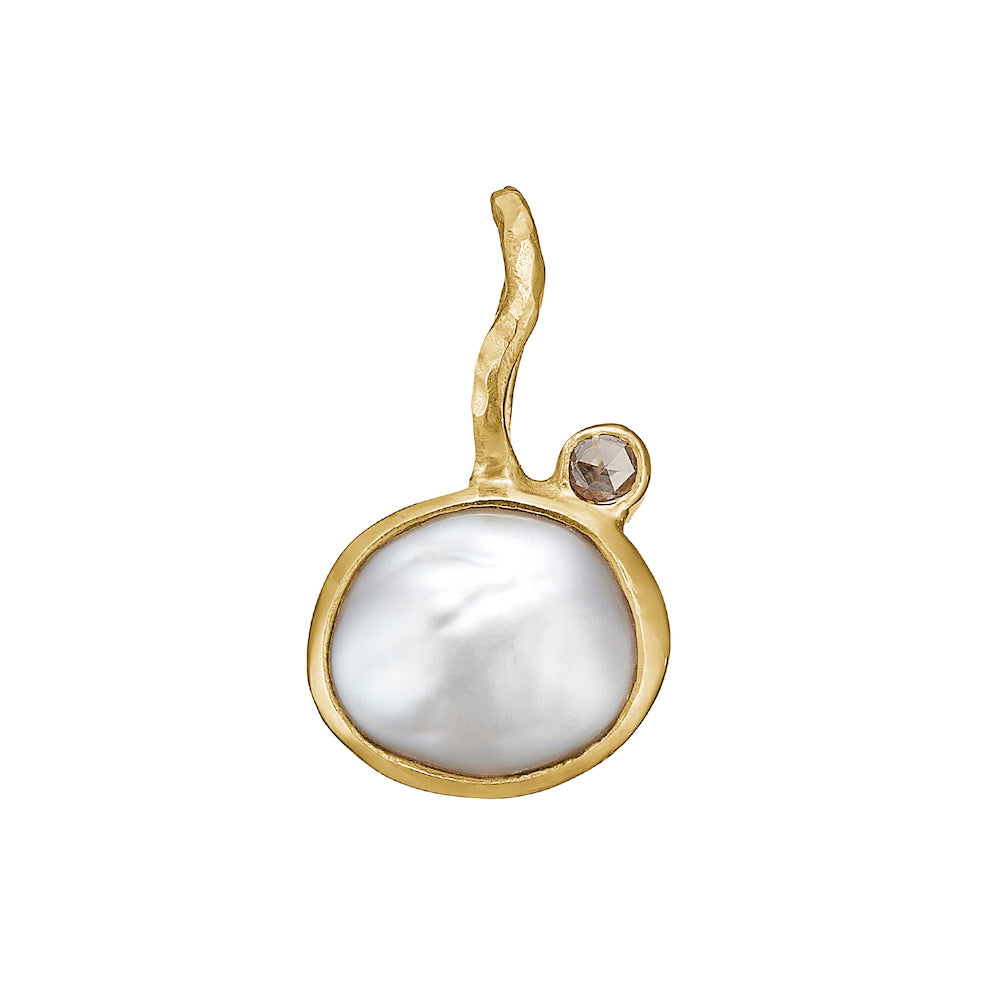 Vedhænget er fremstillet i 14 karat guld med en keshiperle og en 0.02 ct. rose cut diamant.