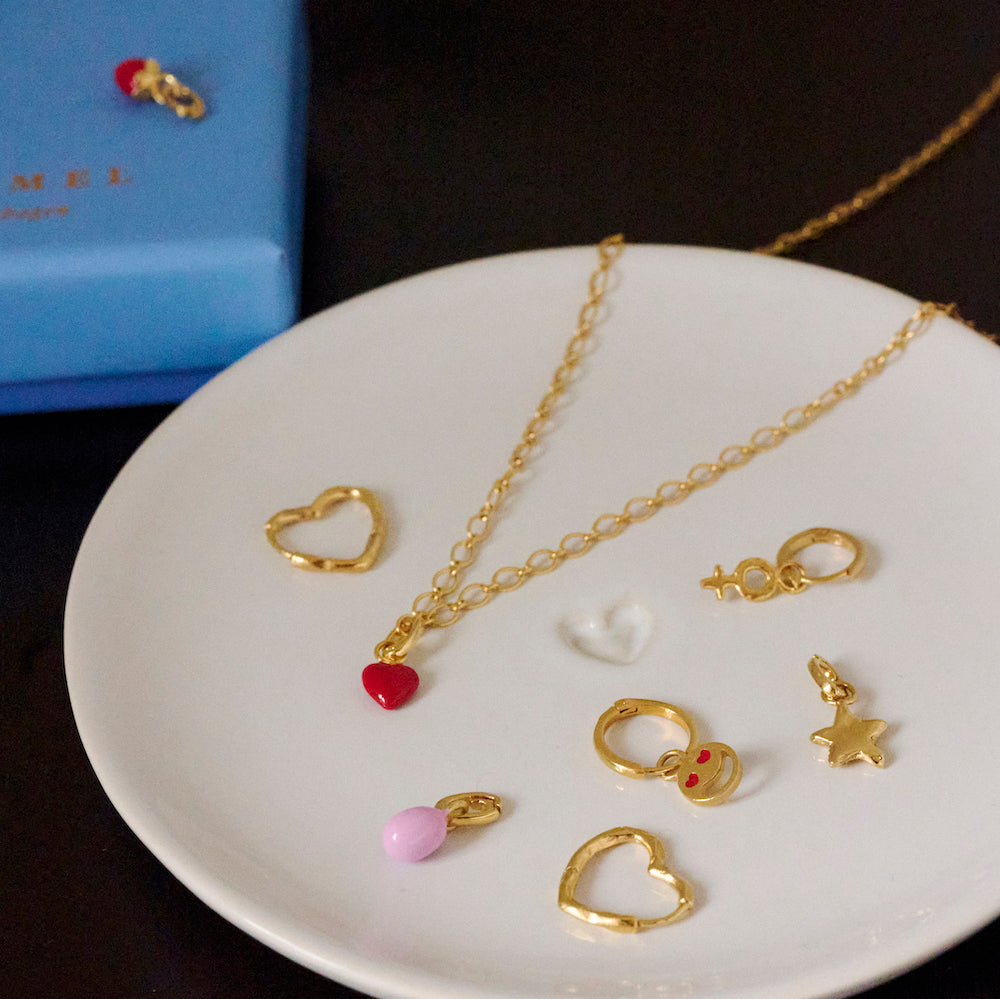 Amore Charm i forgyldt sølv med rød emalje fra det danske smykkemærke ENAMEL Copenhagen. Vedhænget er formet som et lille hjerte.