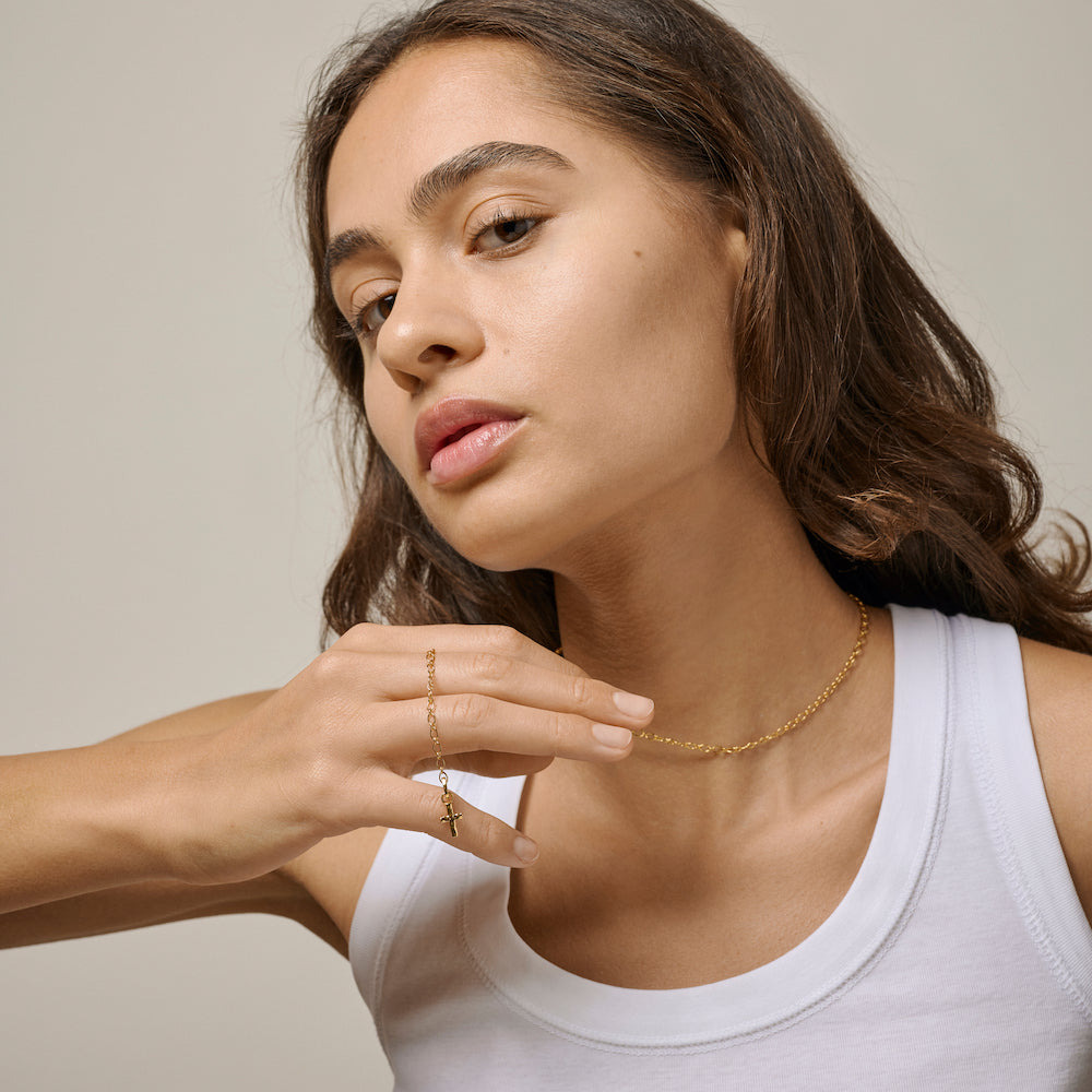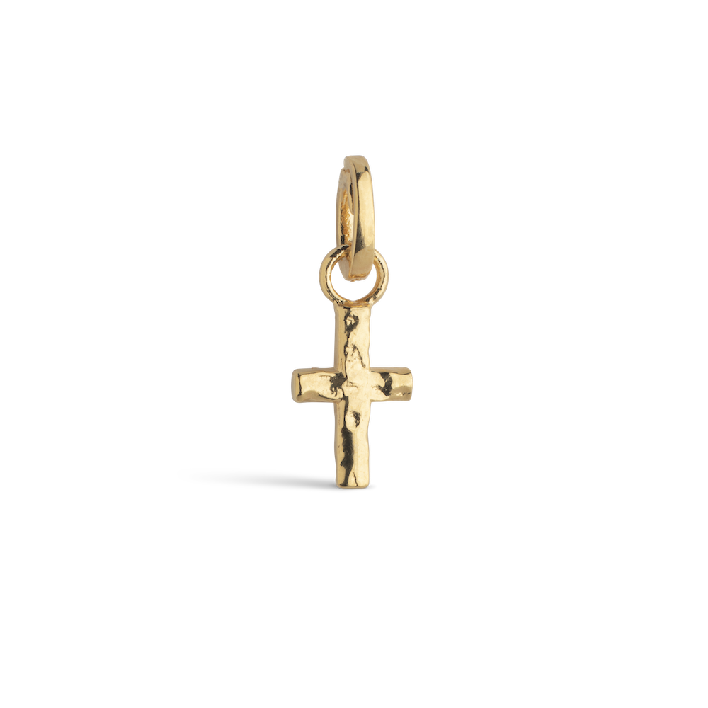 Golden Cross Charm i forgyldt sølv fra det danske smykkemærke ENAMEL Copenhagen.