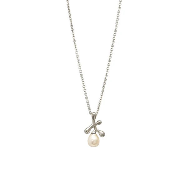 Vedhænget er fremstillet i rhodineret sølv med en smuk matteret overflade. Det er prydet med en barok ferskvandsperle 8mm.