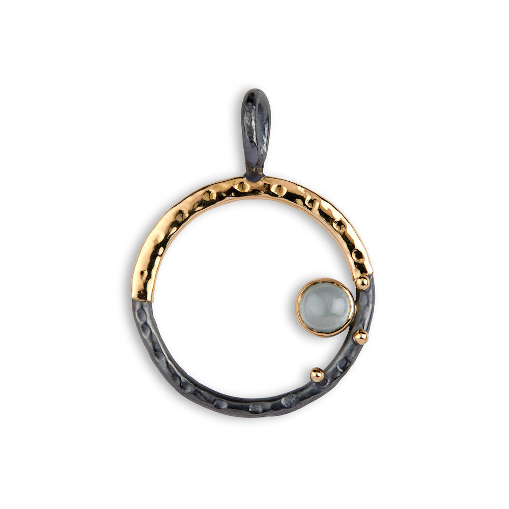 Vedhænget er fremstillet i sølv med med 14 karat guld. Vedhænget er prydet med en smuk akvamarin.