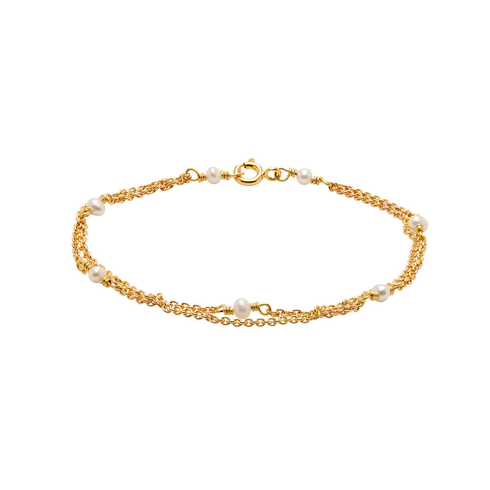 Viklet dobbeltarmbånd i forgyldt sølv med ferskvandsperler.