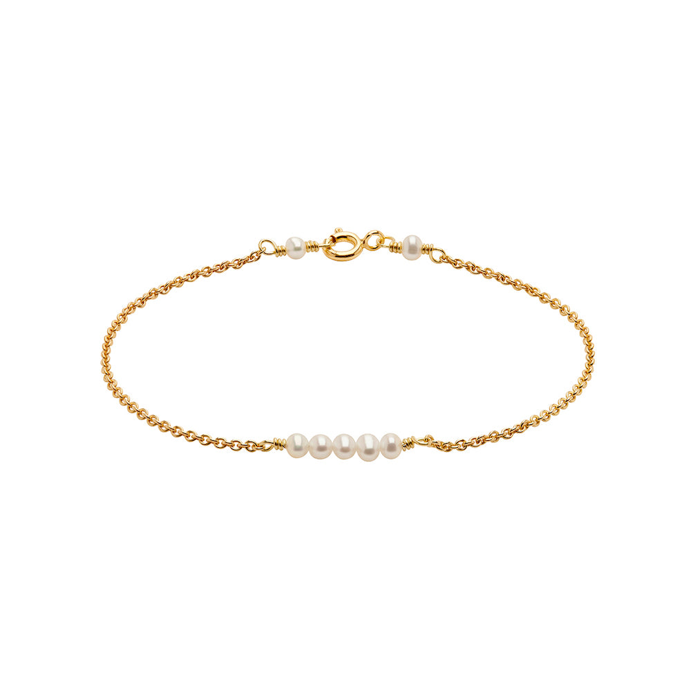 Viklet armbånd med ferskvandsperler i Karen Norup Design. Armbåndet er fremstillet i forgyldt sølv.
