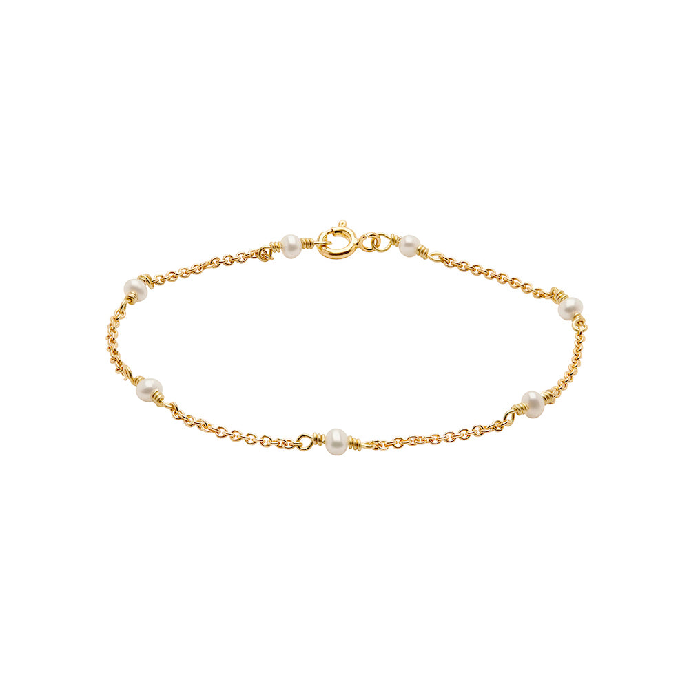 Viklet armbånd i forgyldt sølv med ferskvandsperler i Karen Norup Design.