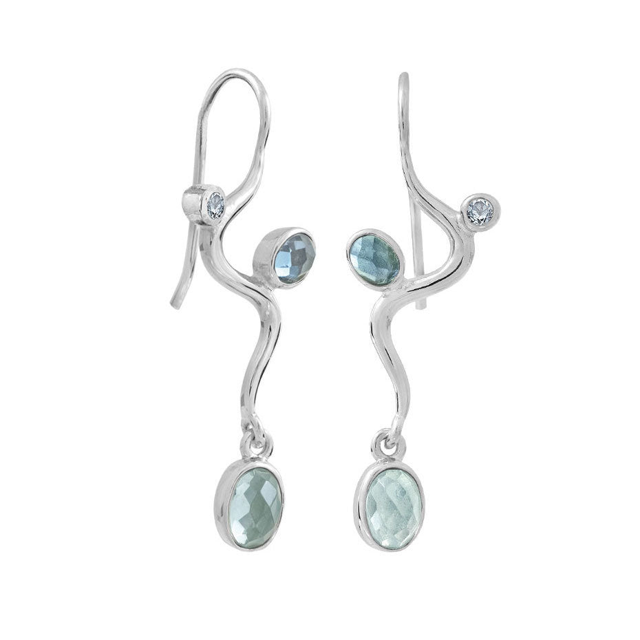 Øreringene er fremstillet i sølv og prydet med Aqua blå kvarts, London blå topas og Sky blå topas.