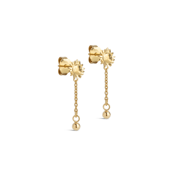 Øreringene er formet som en solsikke-sol, hvorfra der hænger en kæde med en lille guldkugle.
