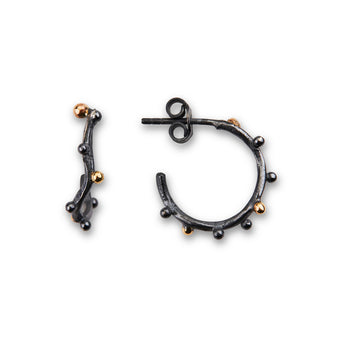 Creolerne er fremstillet i oxyderet sølv med guldkugler i 14 karat guld.