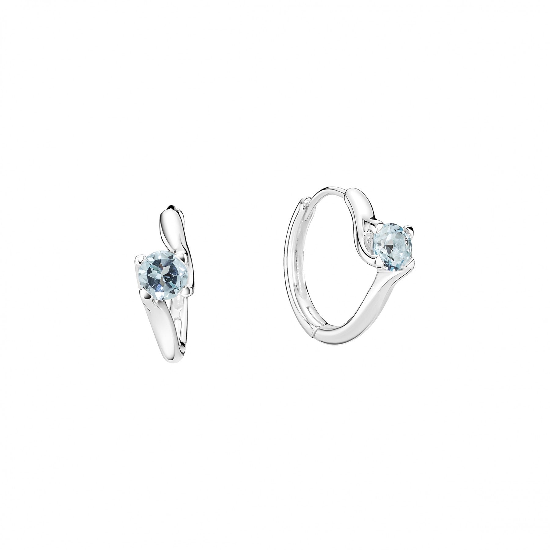 Hoops i sølv fra det danske mærke Lund Copenhagen. Øreringene er prydet med blå facetslebne topaser. Øreringene er med blank overflade.