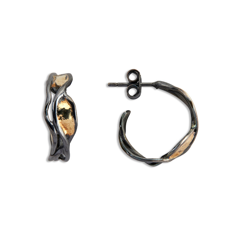 "Nebula" øreringe i oxyderet sølv med 18 kt. guld fra By Birdie.