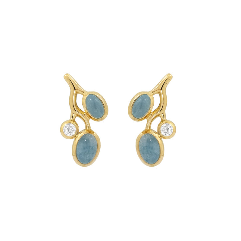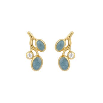 Ørestikkerne er fremstillet i forgyldt sterlingsølv og prydet med blå akvamariner og klare zirkonia.