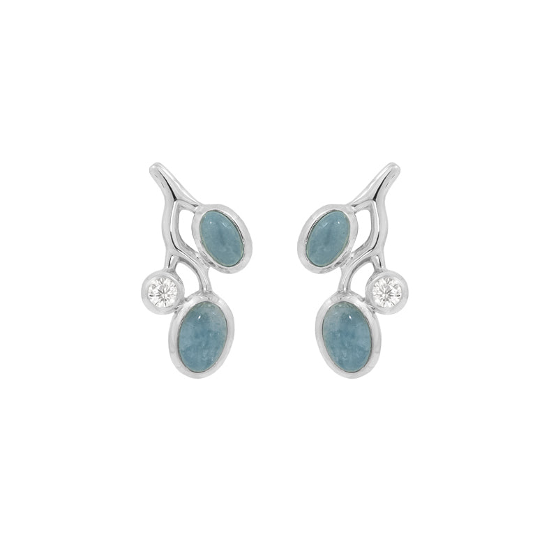 Ørestikkerne er fremstillet i sterlingsølv og prydet med blå akvamariner og klare zirkonia.