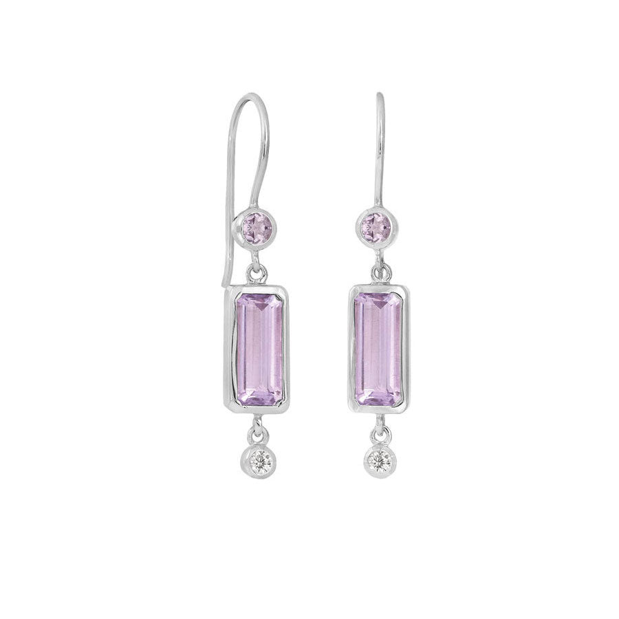 Ørehængerne er fremstillet i sterlingsølv og prydet med en lilla ametyster og zirkonia.