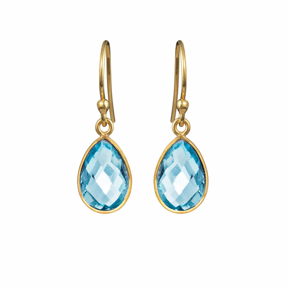 Ørehængerne er fremstillet i forgyldt sølv og prydet med facetteret lyseblå krystal.