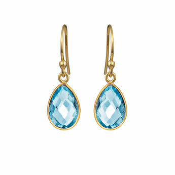 Dråbeøreringe m. lyseblå krystal, forgyldt