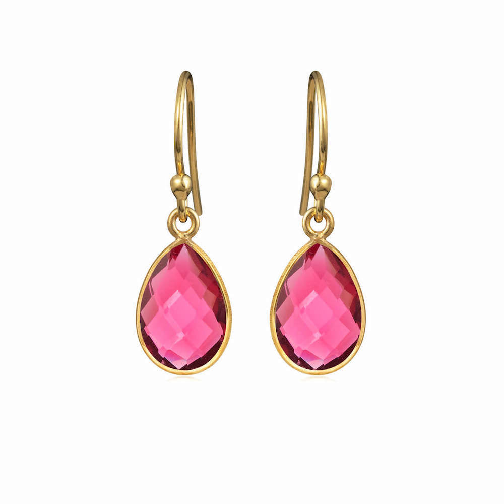 Dråbeøreringe m. pink krystal, forgyldt