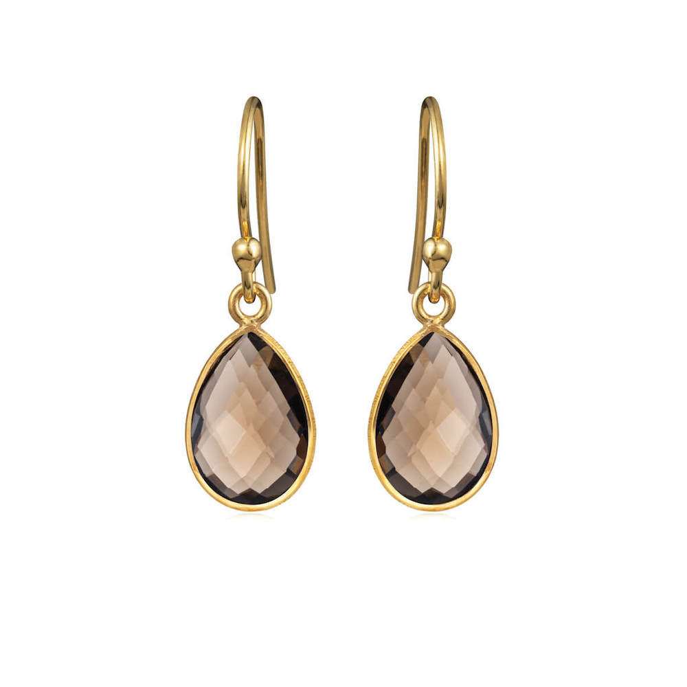 Ørehængerne er fremstillet i forgyldt sølv og prydet med facetteret røgkvarts.