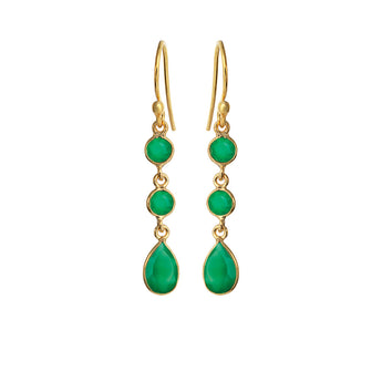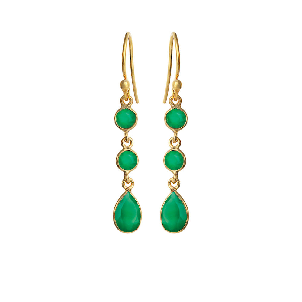 Ørehængerne er fremstillet i forgyldt sølv og hver prydet med tre grønne agater.