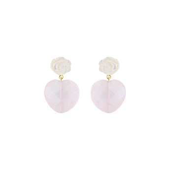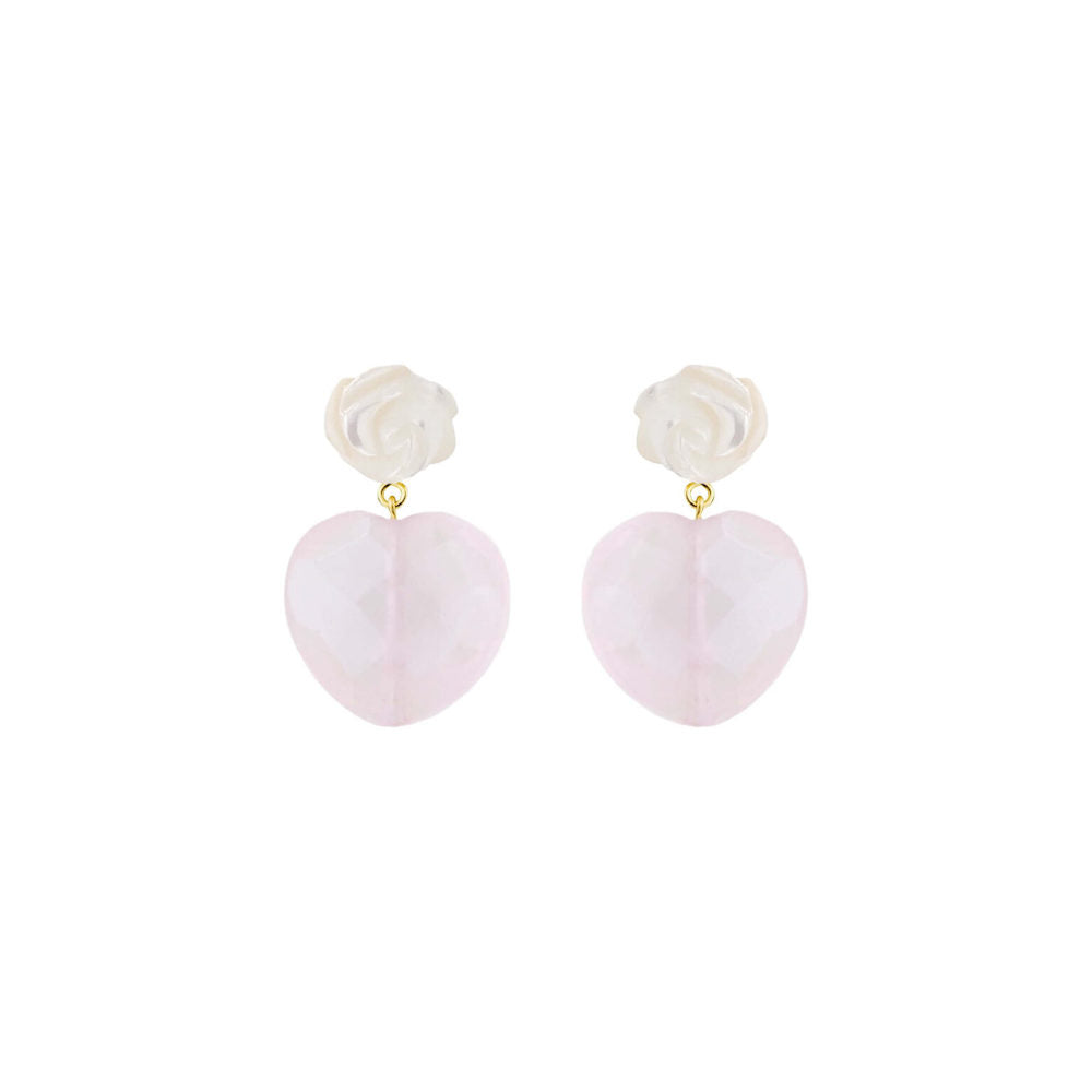 Øreringe m. perlemorsblomst og rosakvartshjerte