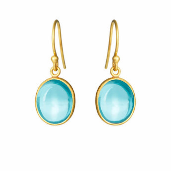 Ørehængerne er fremstillet i forgyldt sølv og prydet med ovale cabochonslebet lyseblå krystal.