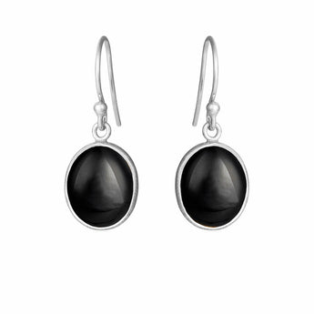 Ørehængerne er fremstillet i sølv og prydet med cabochonslebne sorte agater.