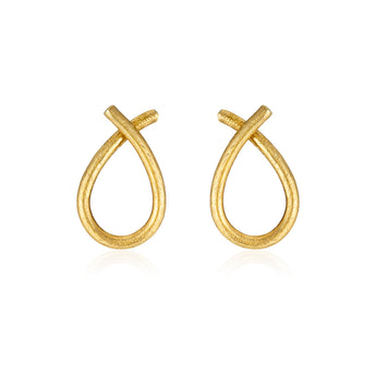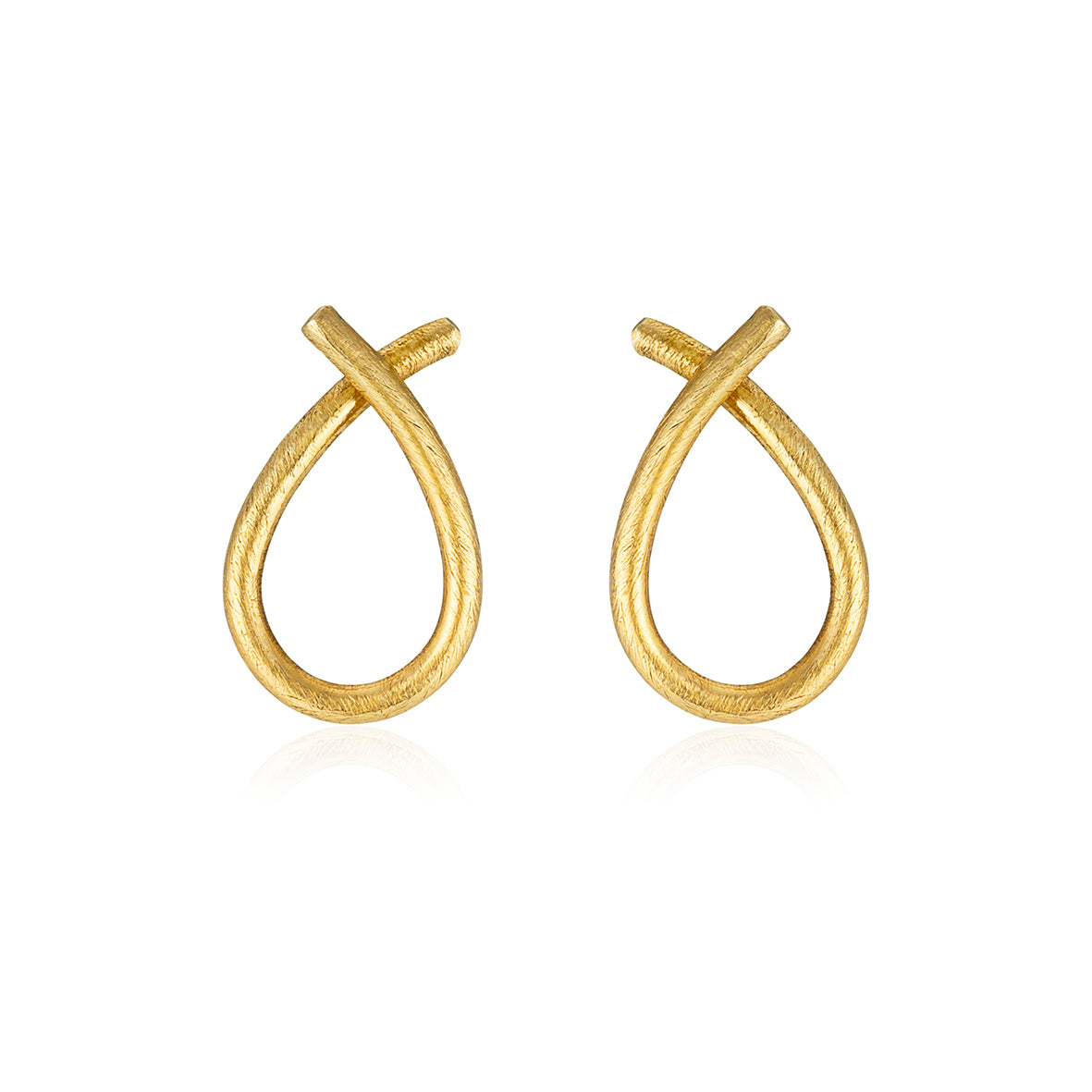 Elegant tvistet dråbe ørestikker med matteret overflade. Udformet i forgyldt sterling sølv.