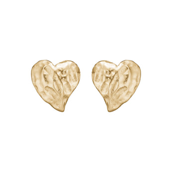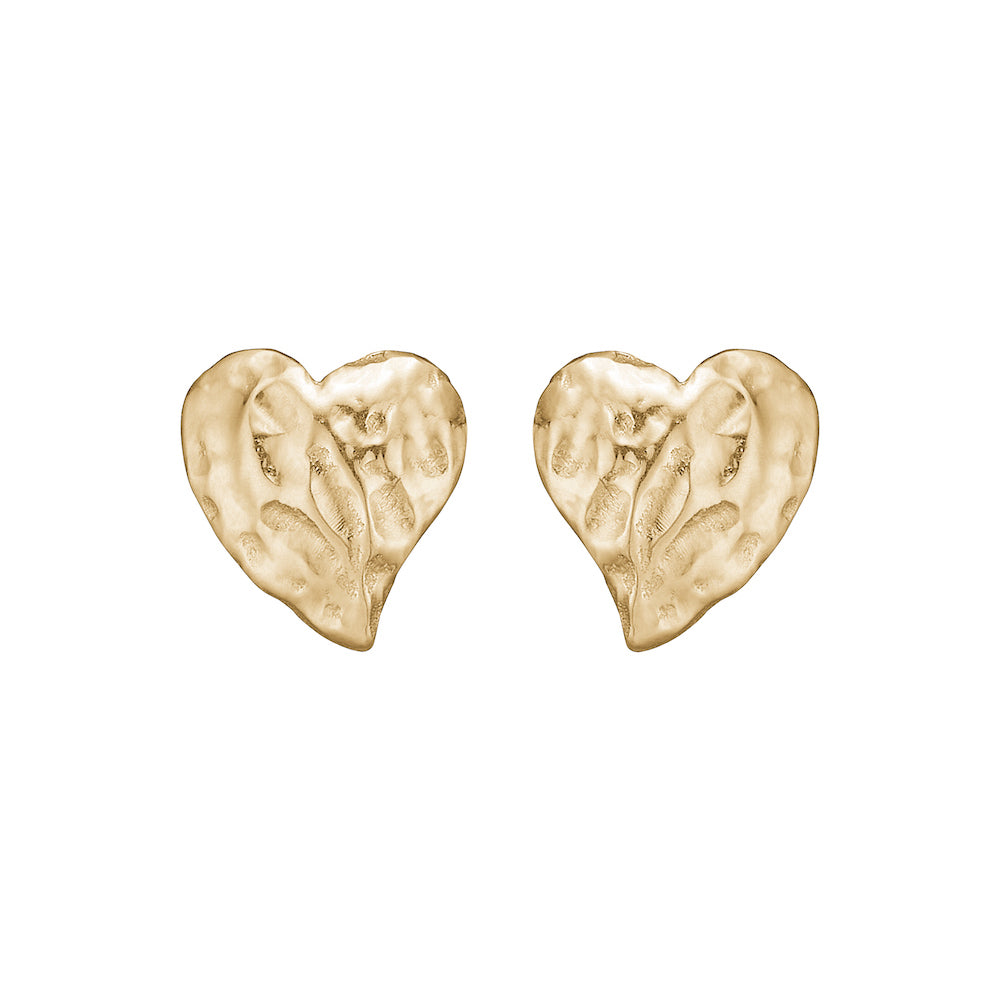 Hjerte-ørestikkerne er fremstillet i 14 karat guld med med en smuk rustik overflade.
