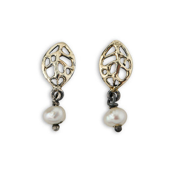 Ørestikkerne er fremstillet i oxyderet sølv med mundblæst 18 karat guld og hvide ferskvandsperle.