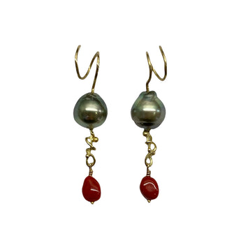 Josephine Bergsøe unika spiraløreringe i 18 og 22 kt. guld med tahitiperler og koraller.