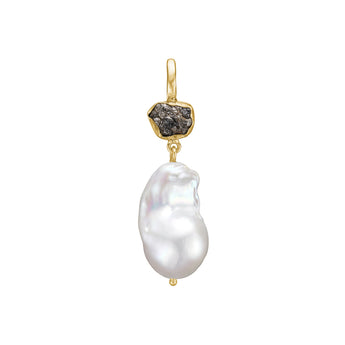 Vedhænget er fremstillet i oxyderet sølv og 14kt. guld. Det er prydet af en barok ferskvandsperle (ca. 12-14mm) og en guldindfattet rådiamant (2.0ct.).