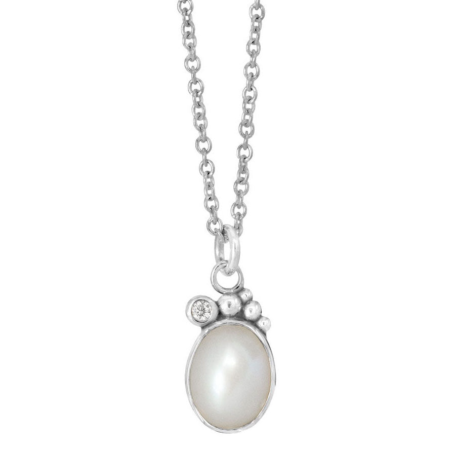 Halssmykket er fremstillet i sterlingsølv og prydet med en ferskvandsperle og zirkon.