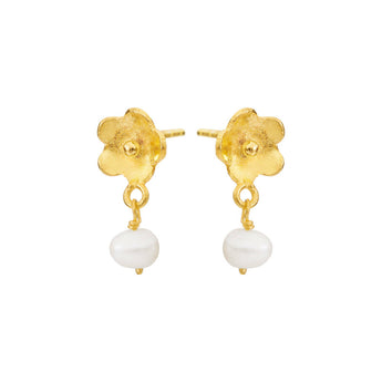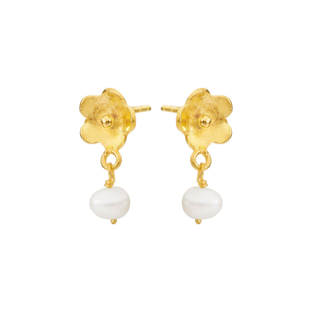Ørestikkerne forestiller en lille blomst, hvorfra der hænger en perle. Ørestikkerne lukkes med en stiklukning.