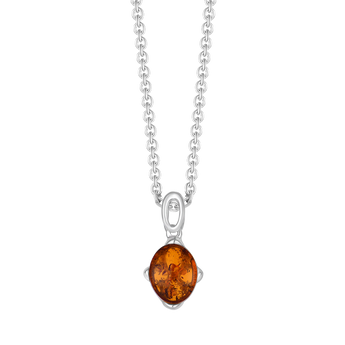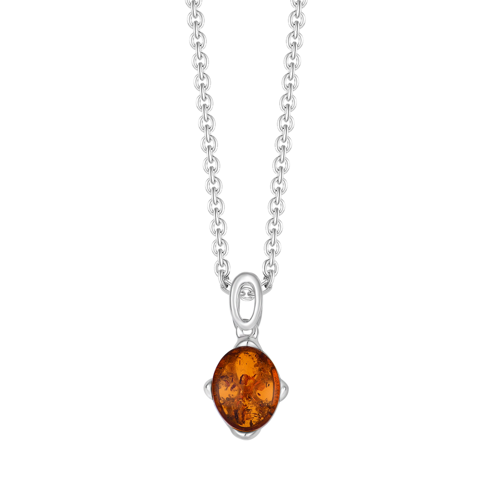 Smukt og enkelt halssmykke i rhodineret sølv med rav.