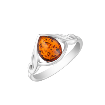 Smuk ring i rhodineret sølv med et ovalt stykke rav.