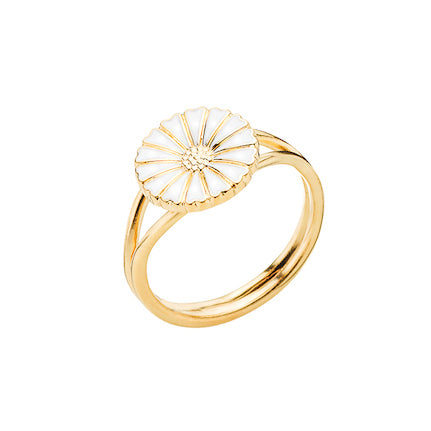 Ring fra Lund Copenhagen med marguerit i forgyldt sterling sølv med hvid emalje.