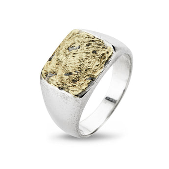 Ringen er fremstillet i sølv og den øverste del af ringen er prydet med 18 karat valset guld. Det valsede guld giver en flot rustik effekt til overfladen.