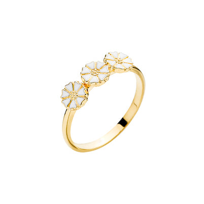 Ring fra Lund Copenhagen med marguerit i forgyldt sterling sølv med hvid emalje.