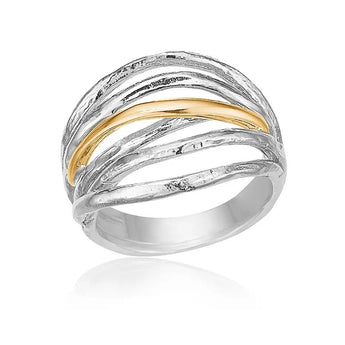 Ringen er fremstillet i rhodineret sølv med en detalje af en kraftig tråd i 14 karat guld.