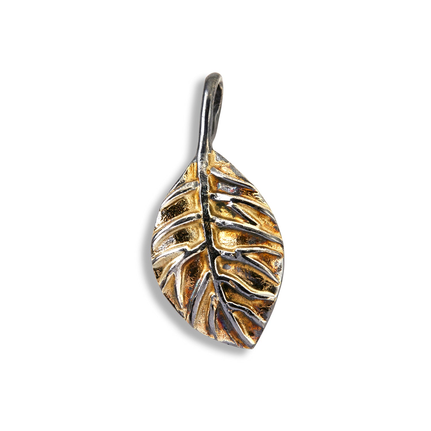 Beech Golden vedhæng fra det danske smykkemærket By Birdie. Vedhænget er i oxyderet sølv med 18 kt. mundblæst guld.