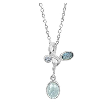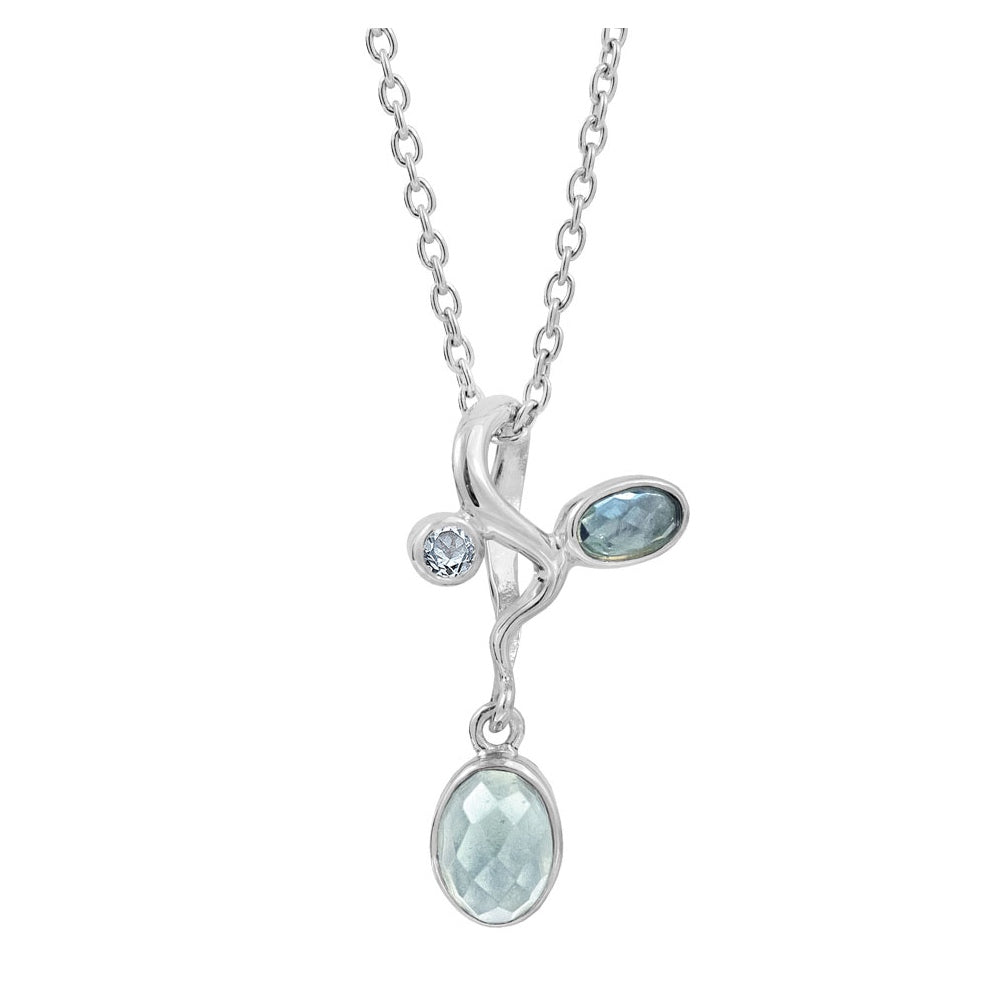 Halssmykket er fremstillet i sølv og prydet med Aqua blå kvarts, London blå topas og sky blå topas.